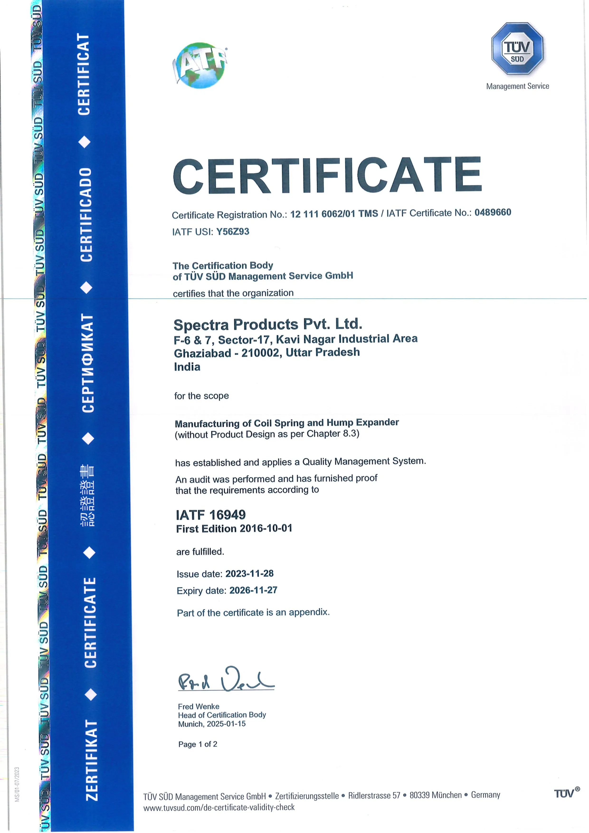 SPECTRA PRODUCTS has achieved many milestones and is today one of the preferred suppliers of Coil Spring Expander and Hump Expander in the world market.